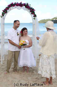 Thank you for the personal attention to detail and timely responsiveness to our questions leading up to our wedding day. We appreciated the precise directions. We wanted to be able to just show up on the wedding day without having to worry about any of the arrangements or details, and you made that possible. The setting, flowers, and arch were beautiful, and we will always remember our special day on the beach at Magens Bay.